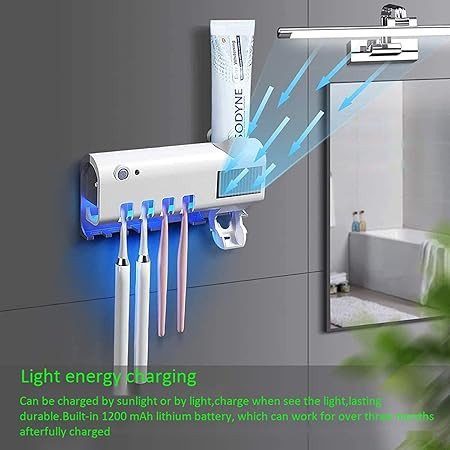 Product details of UV Light Ultraviolet Toothbrush Sterilizer 2 in 1 Toothbrush Holder Automatic Toothpaste Squeezers Dispenser Home Bathroom Set Sterilizer Solar Energy Electric Toothbrush Disinfectant Cleaning Wall Mount Toothpaste Dispenser Holder