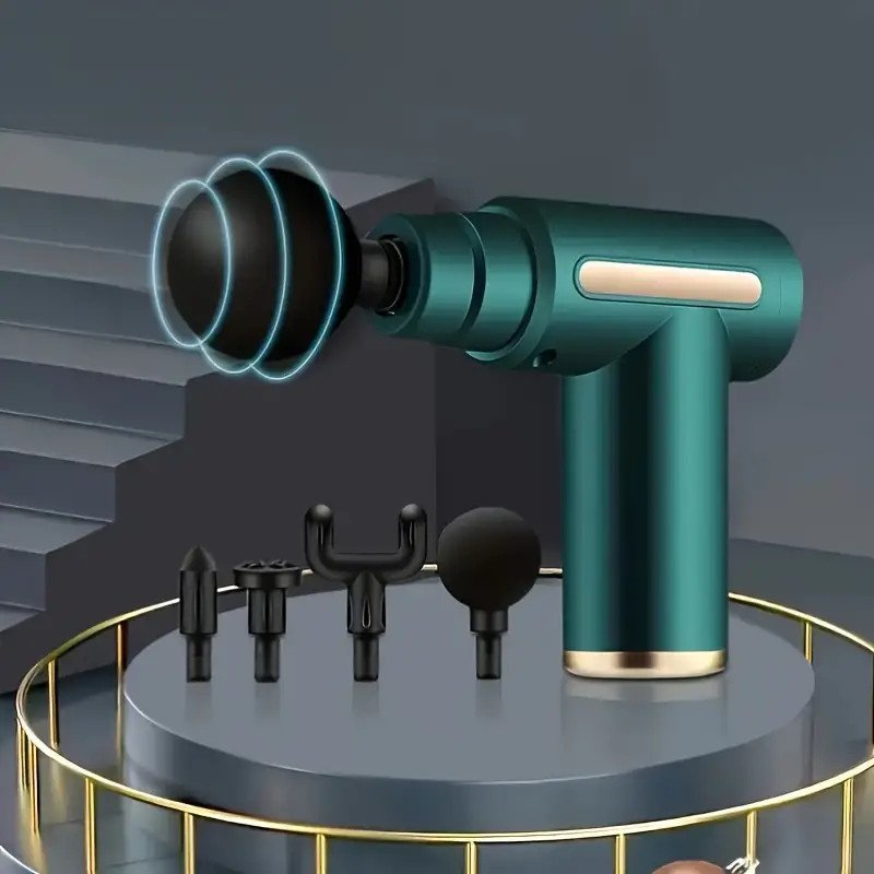 portable rechargeable deep tissue massage gun with 4 replaceable massage heads, 6-speed mode adjustment, silent brushless motor, handheld percussioner for muscle relief and exercise recovery