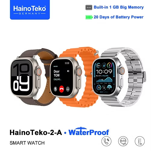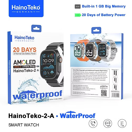 Haino Teko 2-A Smart Watch Ultra 2 , AMOLED Touch Screen , 1GB Memory, Bluetooth , With 3 Strap , Waterproof, Muti-Color